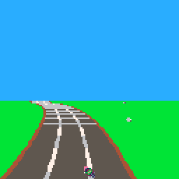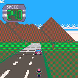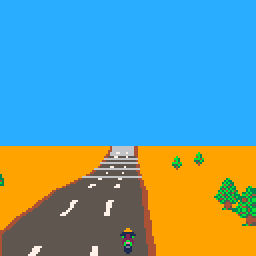 It started as a simple experiment: Use Pico-8 to render a road like in the old 8\16-bit console racers like Road Rash, Lotus Turbo Challenge and Rad Racer. In just over 3 weeks, it's gone from a crappy little motorcycle sprite on a green rectangle, to a slightly less crap motorcycle on a dynamically generated road, with cars, trees, signs barriers, the works.